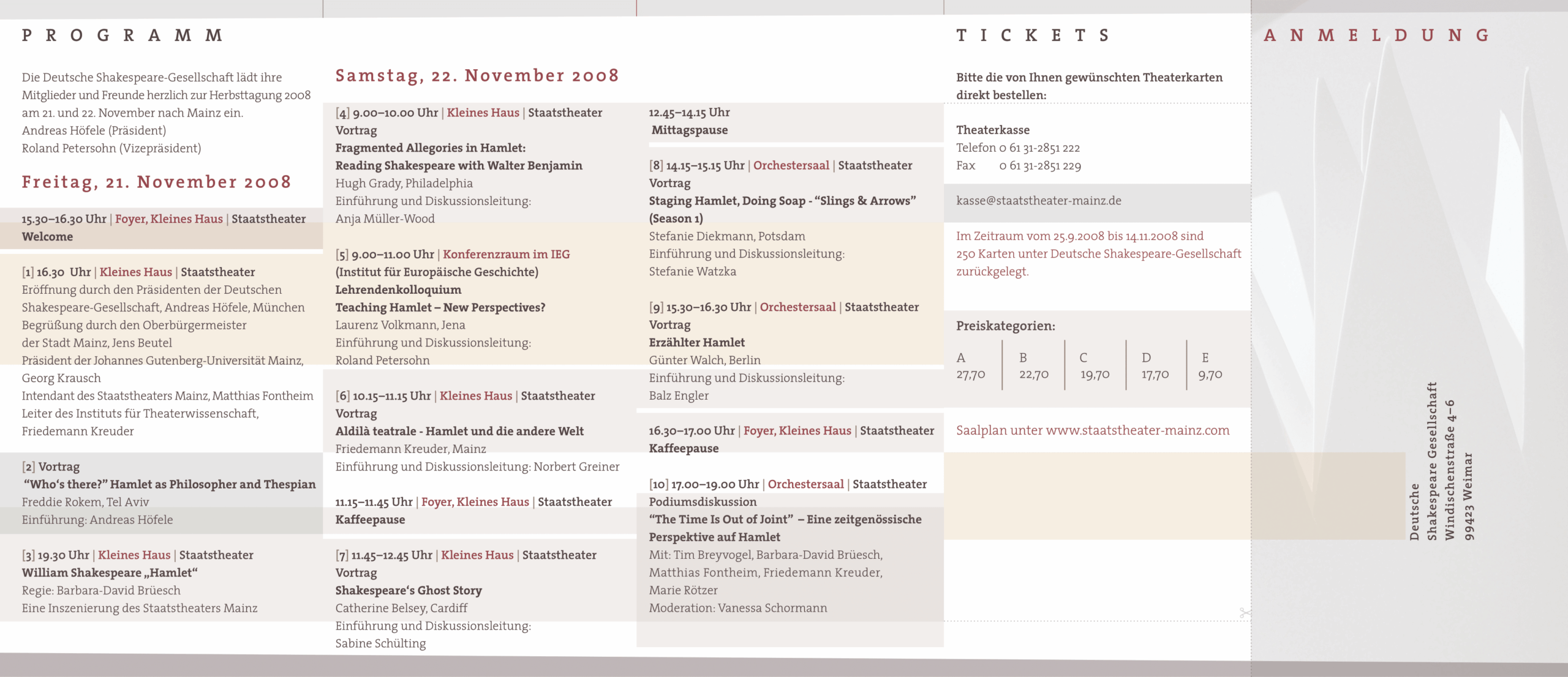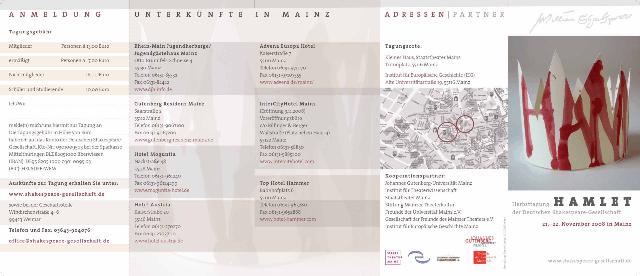 The autumn conference 2008 of the German Shakespeare Society took place on November 21 and 22 in Mainz.