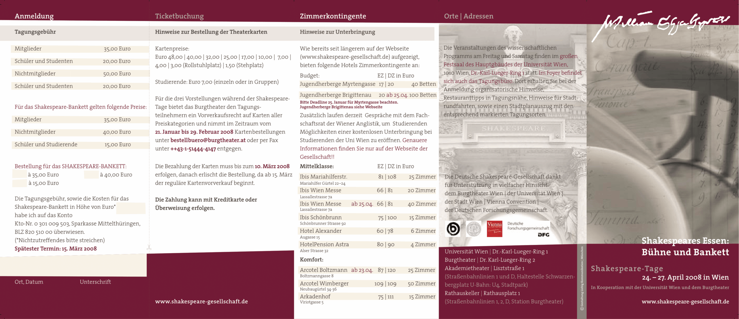 Die diesjährigen Shakespeare-Tage fanden vom 24. bis 27. April 2008 in Wien statt.