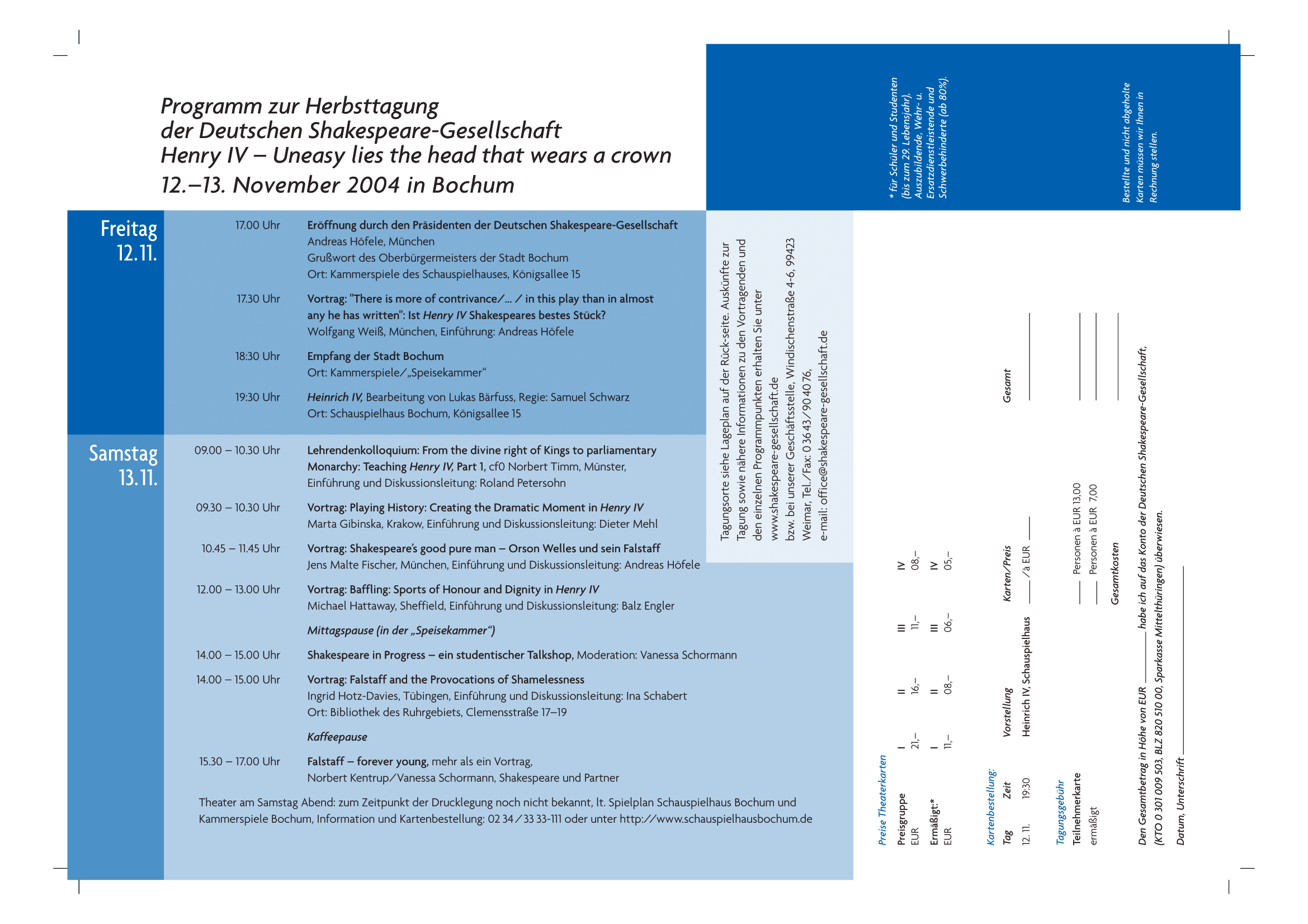 Programmheft Bochum, Herbst 2004
