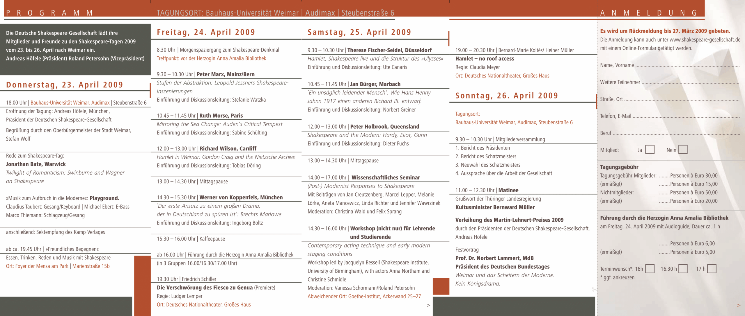 Die Frühjahrstagung der Deutschen Shakespeare-Gesellschaft fand vom 23. bis 26. April 2009 in Weimar statt.