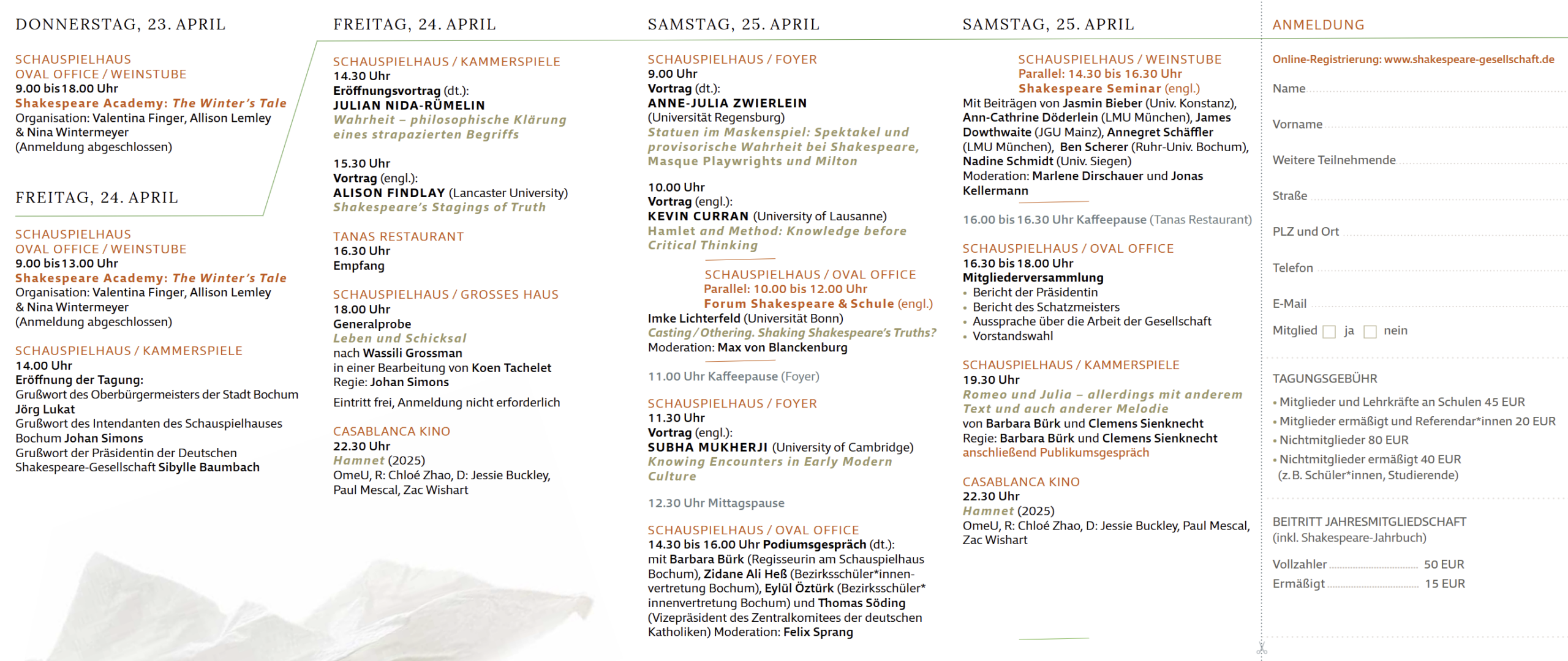 Hiermit melde ich mich verbindlich zur Frühjahrstagung der Deutschen Shakespeare-Gesellschaft vom 24. bis 26. April 2026 in Bochum an.